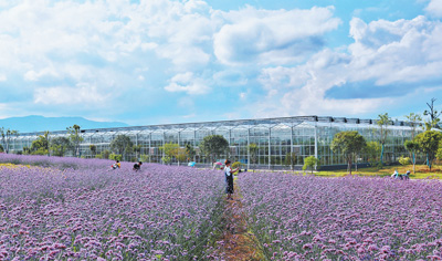 “四月鄉(xiāng)村”現(xiàn)代休閑農(nóng)業(yè)產(chǎn)業(yè)園馬鞭草花絢麗開放,吸引游客“打卡”體驗。鄭 敏 攝