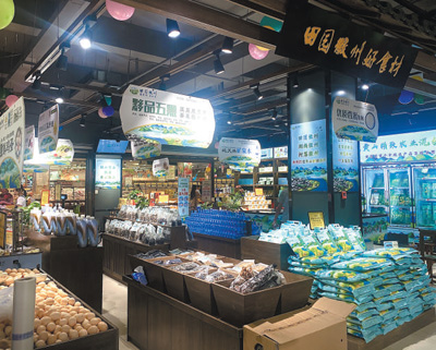 在黃山市綠色農(nóng)產(chǎn)品區(qū)域公用品牌“田園徽州”元一旗艦店,當?shù)靥厣r(nóng)副產(chǎn)品琳瑯滿目。程央央 攝