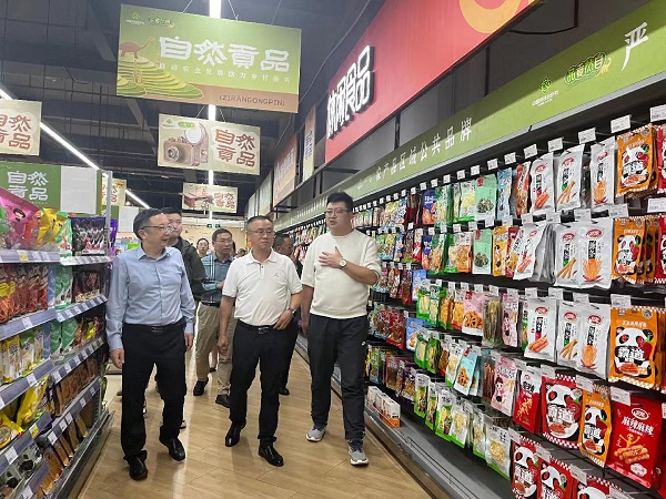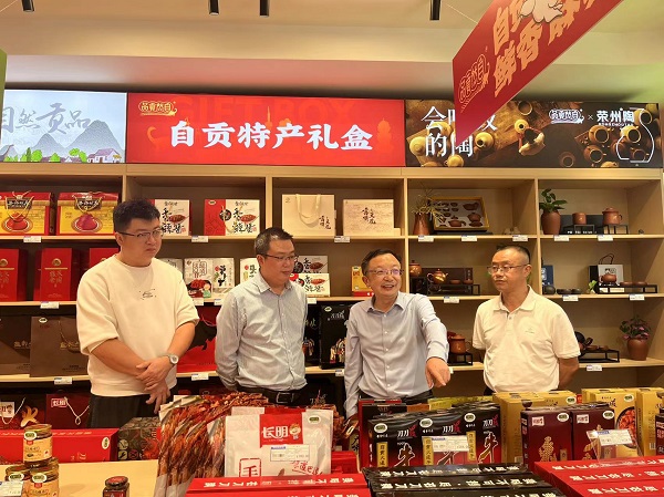 在自然貢品華商旗艦店,劉羽一行重點(diǎn)了解店面經(jīng)營(yíng)管理模式、商品分區(qū)設(shè)置、產(chǎn)品開(kāi)發(fā)銷售、供應(yīng)商合作模式、線上商城建設(shè)等方面情況,就推動(dòng)打造“自然貢品”和“巴食巴適”兩個(gè)區(qū)域公用品牌集中展示展銷專區(qū)進(jìn)行了交流探討。